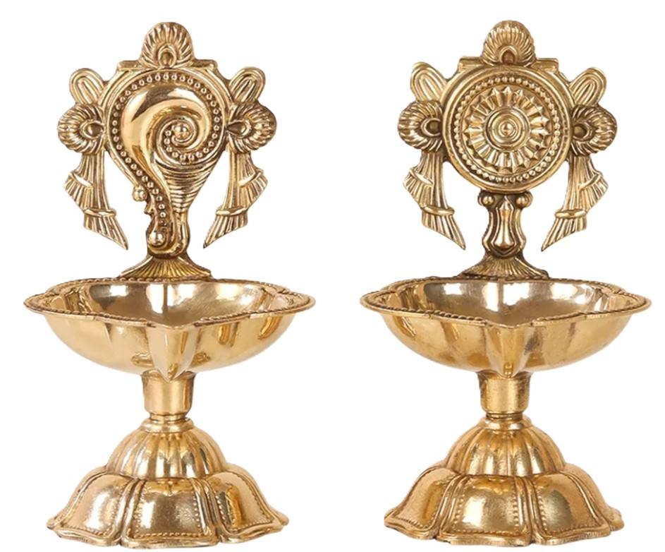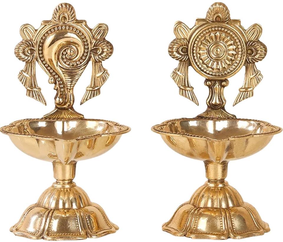 Handcrafted Brass Shankhachakra Diya Oil Lamp Traditional Indian Temple Decor Pooja Lantern Vastu Spiritual Light Religious Gift