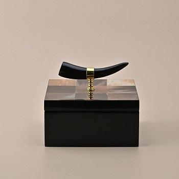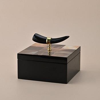 Boîte à bijoux artisanale en corne de buffle Design complexe en bois et laiton naturel avec incrustation complexe pour les cadeaux religieux de l'Islam