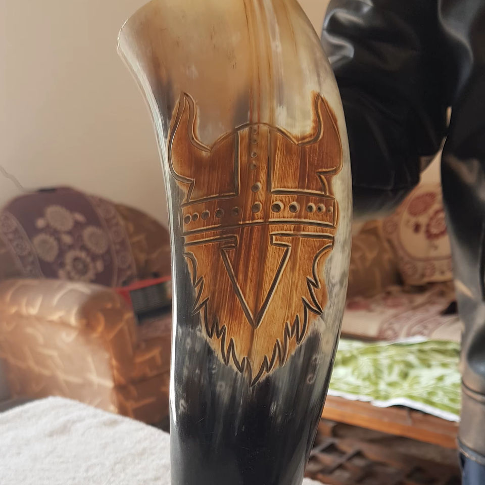 Corne à boire artisanale sculptée sur mesure en corne de buffle, style Viking, pour la bière