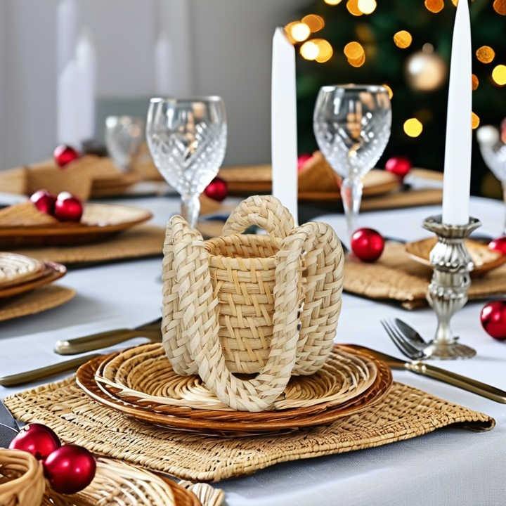 Ronds de serviette en rotin faits à la main Design à volants rustique Décoration de table Fournitures de fête de mariage Vietnam