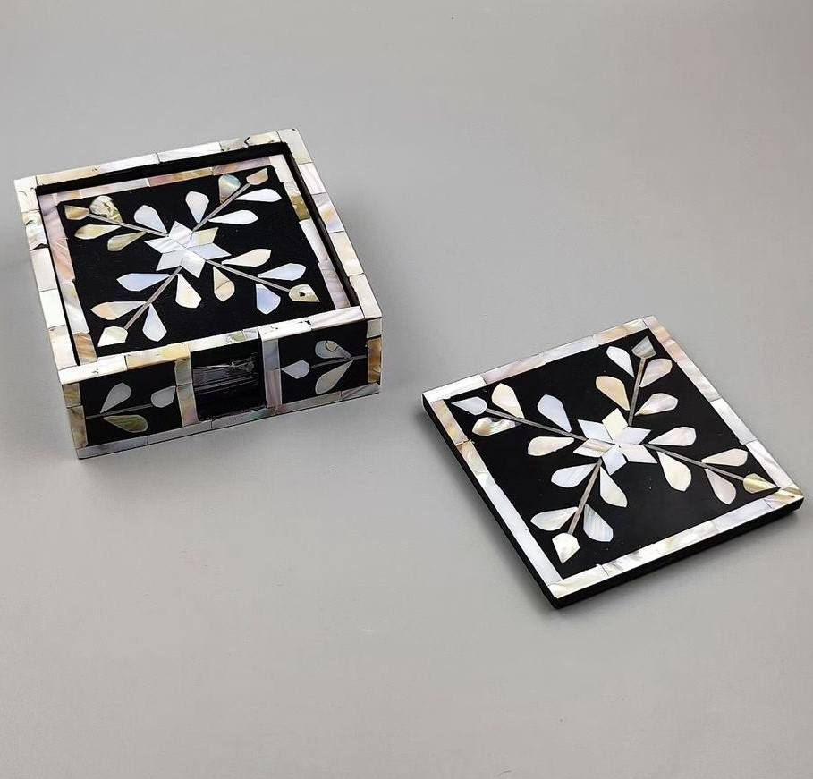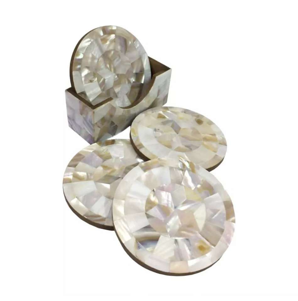 Sous-verres classiques écologiques en os incrusté faits à la main avec finition naturelle irisée, épaisseur 10 mm, pour thé, café et boissons