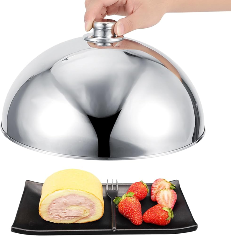 Couverture de gâteau ronde classique en acier inoxydable, fabriquée à la main, avec plateau à collation et couvercle en dôme, à prix avantageux