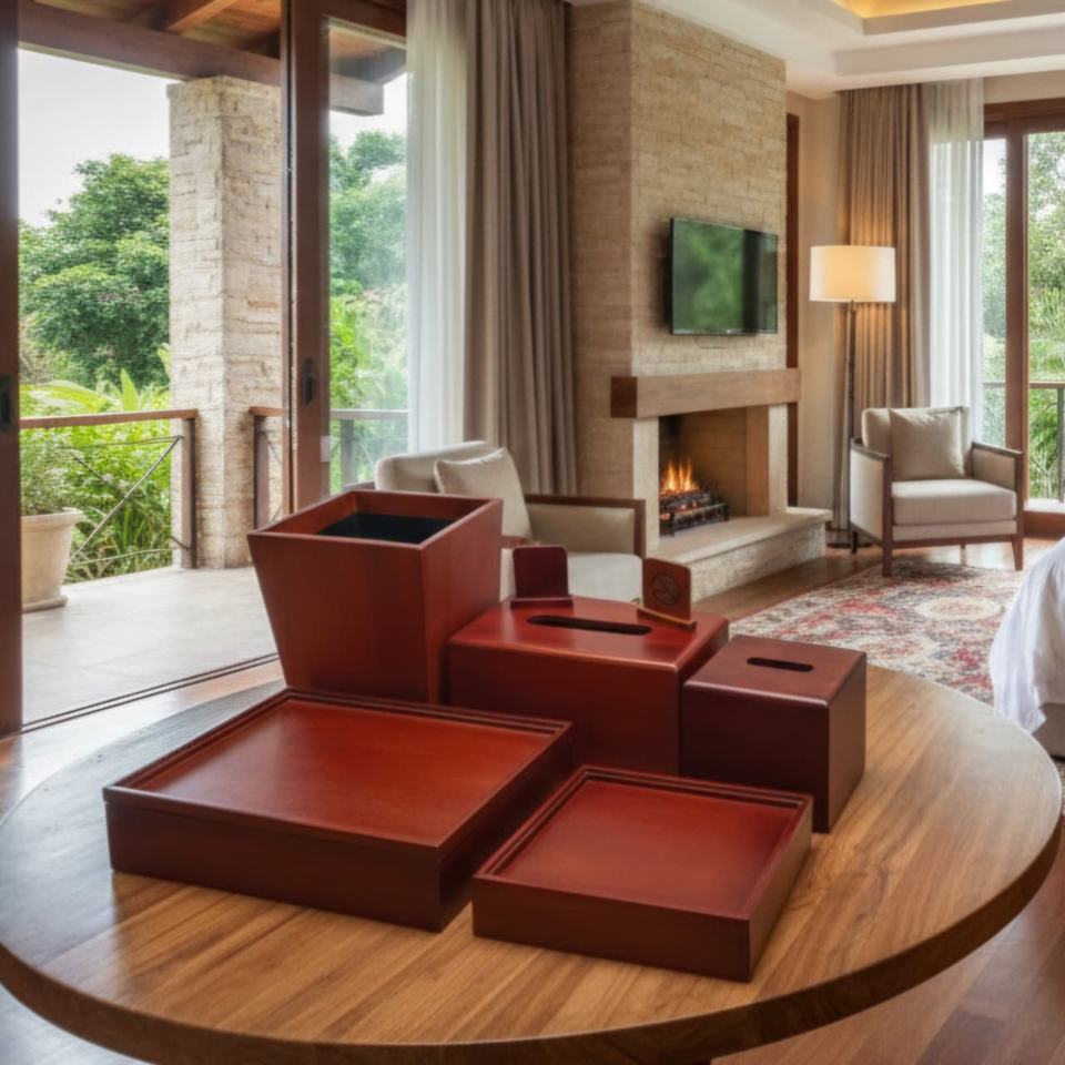 Ensemble classique simple fait à la main, confortable, imperméable, lavable, portable, en bois brun, kit de salle de bain, accessoires de chambre d'hôtel, RTS