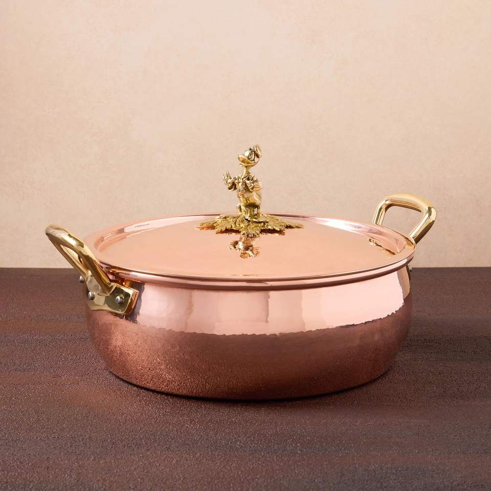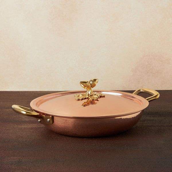 Casserole en cuivre artisanale avec couvercle, poignées décoratives en laiton, plat de cuisson en cuivre de luxe pour la restauration