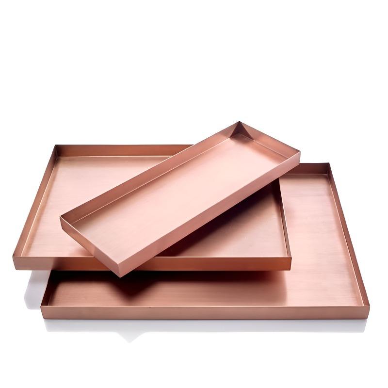 Plateau de présentation en cuivre artisanal, design simple, plateau de service rectangulaire en cuivre, contemporain, écologique, pour la cuisine