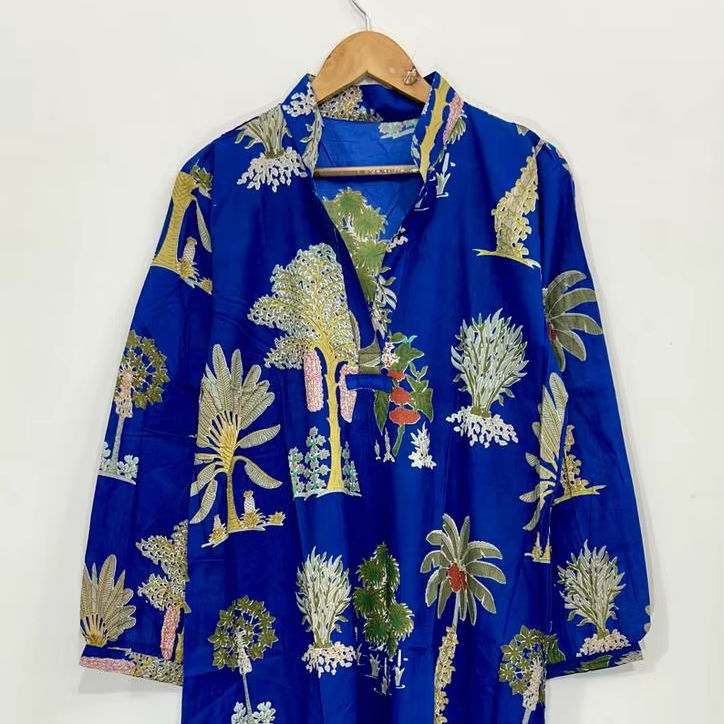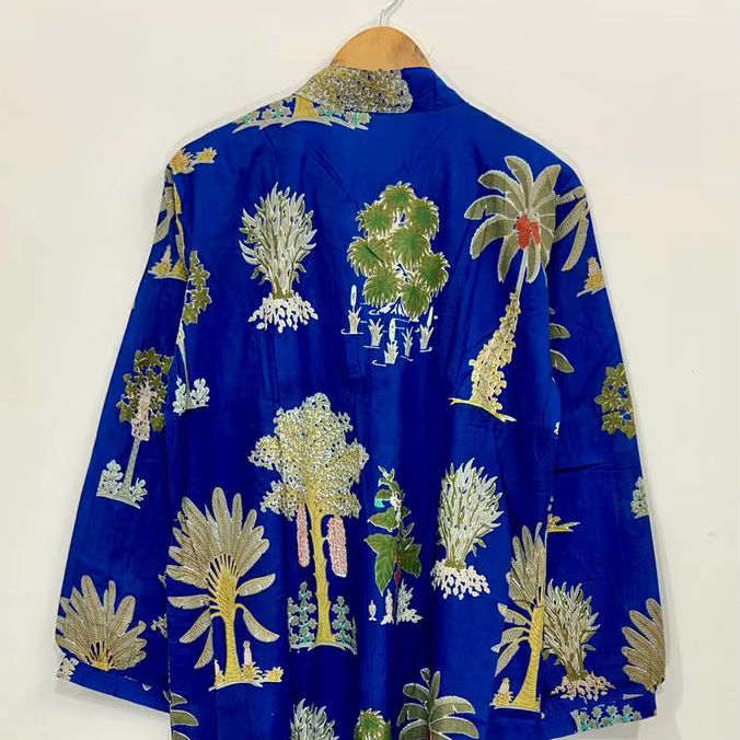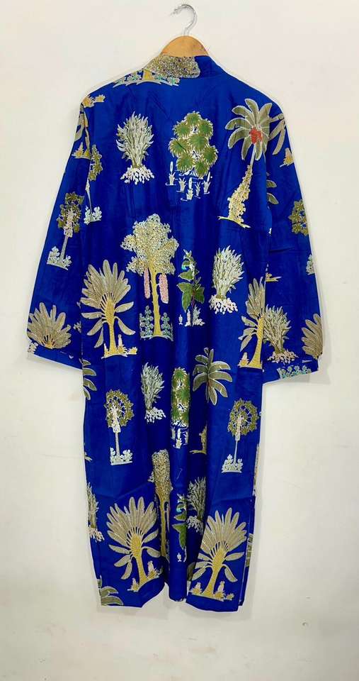 Robe en coton fleuri faite à la main : Kimono bohème avec poches