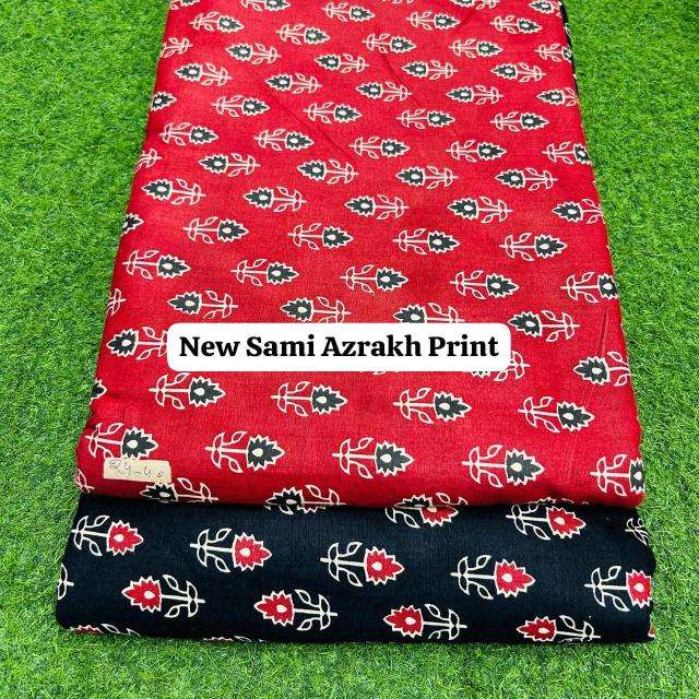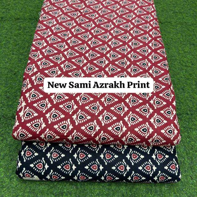 Tissu imprimé Sami Azrakh en coton artisanal, couleurs riches, motif ethnique classique, parfait pour la confection de vêtements, la couture, le quilting, le port quotidien