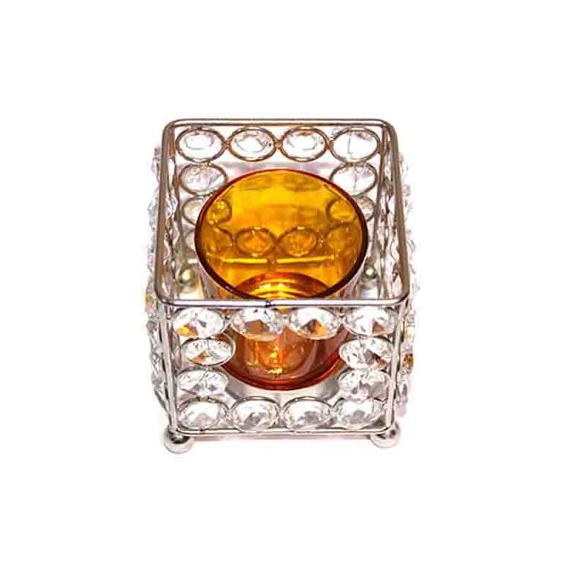 Handcrafted Crystal Beads Candlestick Holder Elegant Square Shape Tea Light Holder Perfect for Wedding Decor and Centerpieces