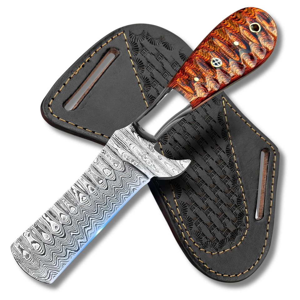 Couteau de boucher artisanal en acier Damas avec étui en cuir, lame fixe en acier inoxydable, couteau de cowboy, couteau de boucher de poche