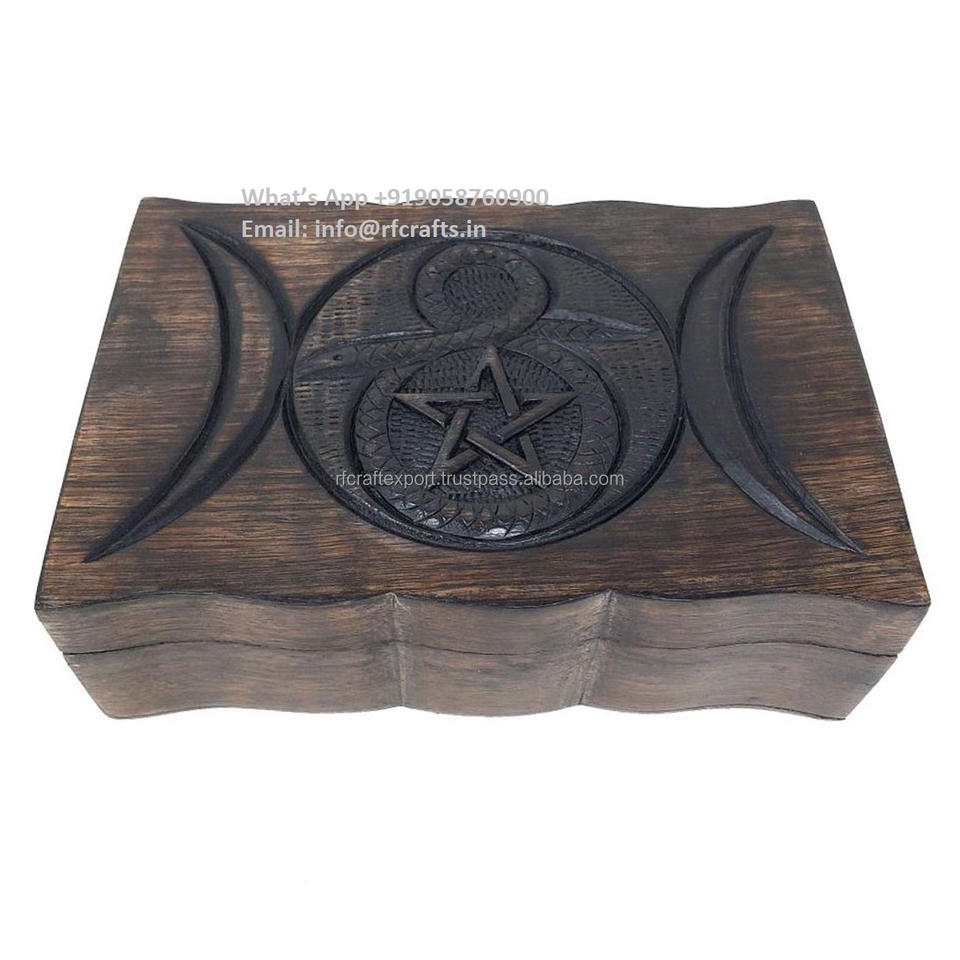 Handcrafted Dark Brown Rustic Style Vegvisir Box Business Gift for Men Engraved Teak Nordic Mythology Viking Art Jewelry Box