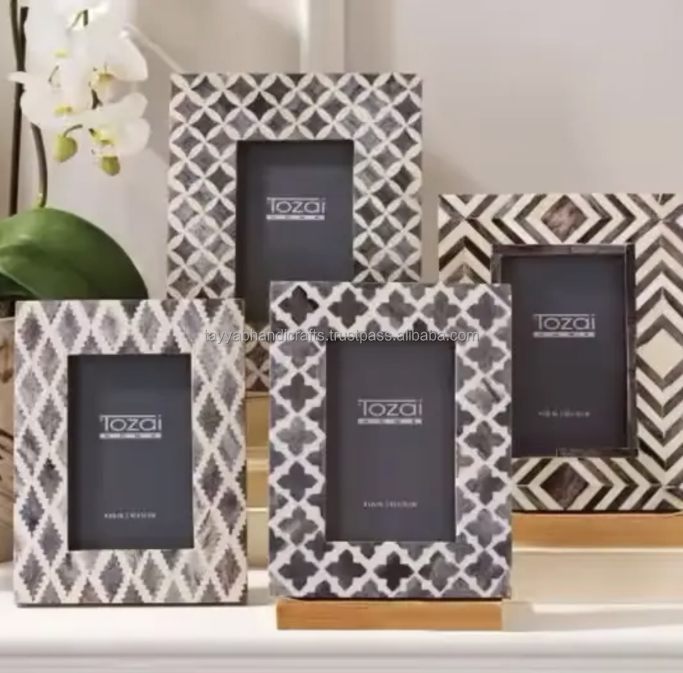 Cadre photo en os incrusté de conception artisanale, décoration élégante pour la maison, cadre d'exposition en provenance d'Inde