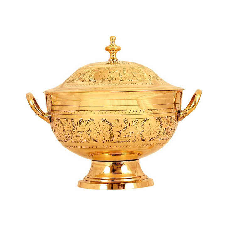 Réchauffeur de nourriture/casserole/marmite en acier inoxydable plaqué or de conception artisanale avec porte-cuillère-pour restaurants, buffets, hôtel