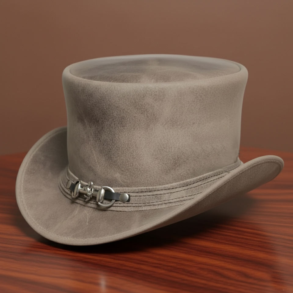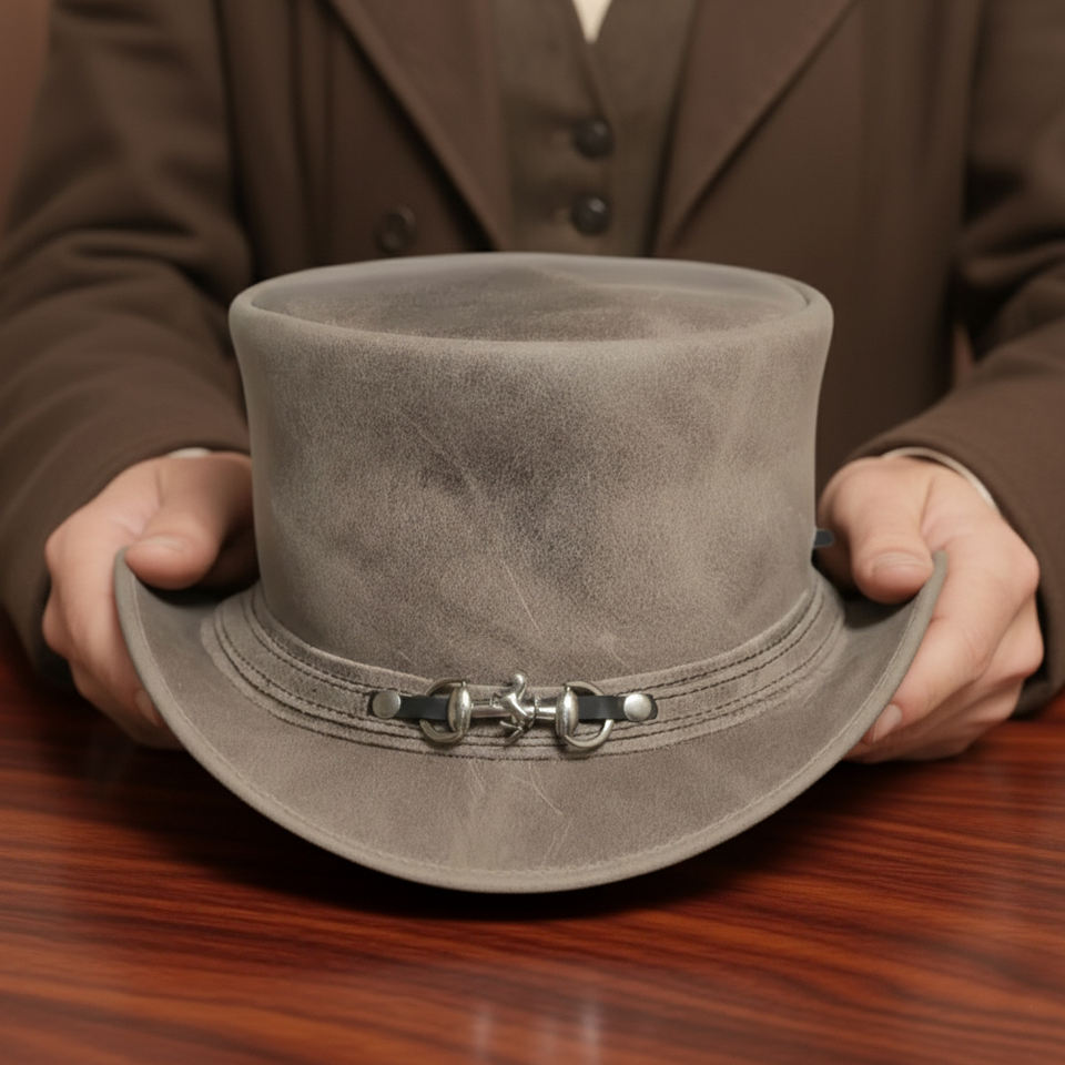 Chapeau haut de forme en cuir marron vieilli fait main, style unique steampunk, cowboy, western