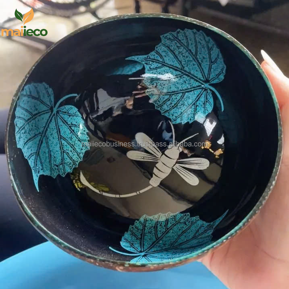 Descriptions:En gros Vietnamien Coloré Laque De Noix De Coco Peinture Shell Bols