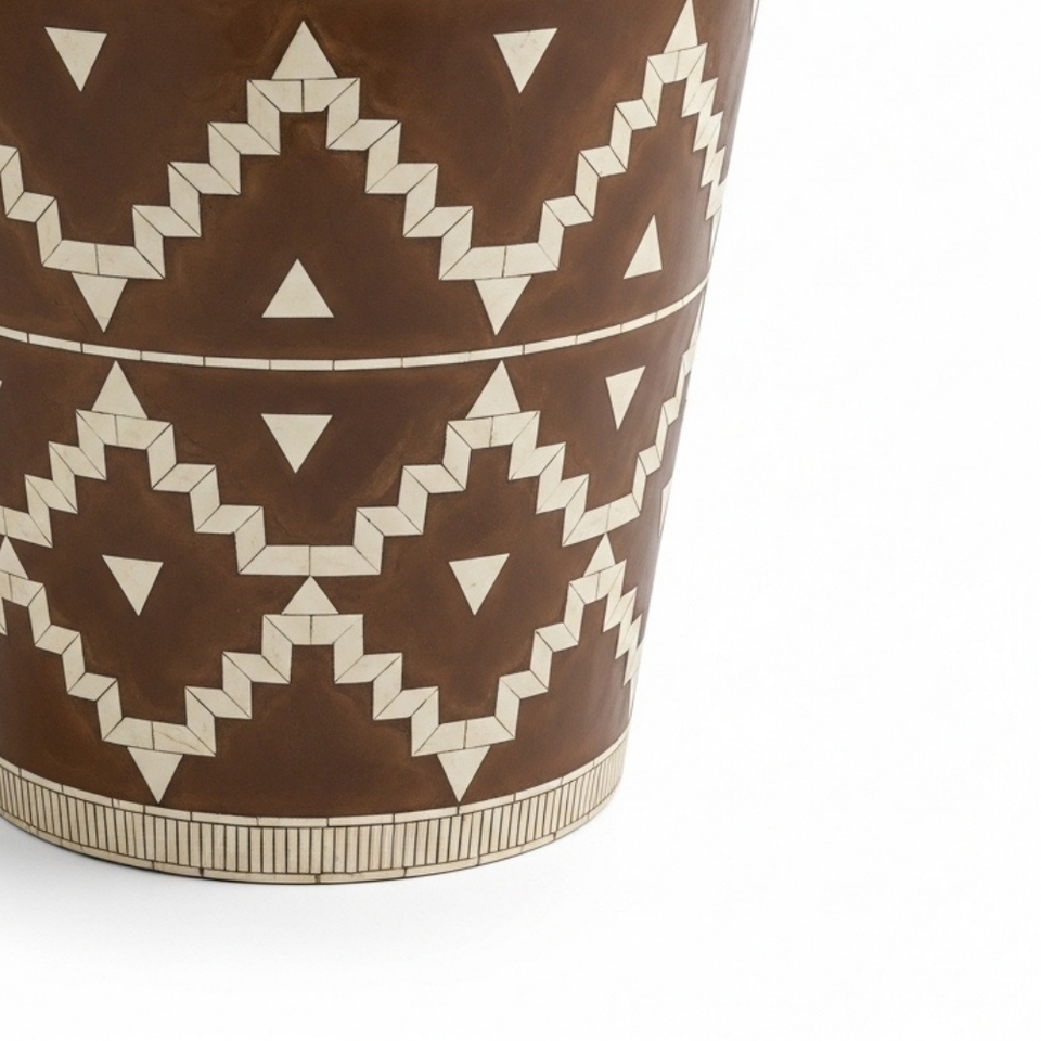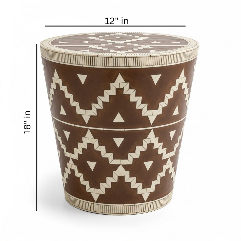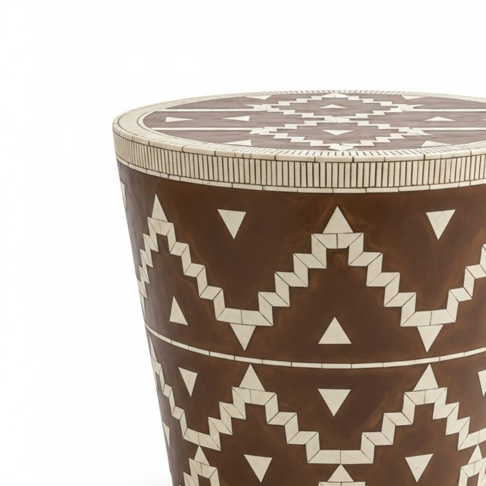 Table d'appoint artisanale en émail et incrustations adhésives, motif tribal géométrique, tabouret d'appoint pour salon, chambre, école, appartement