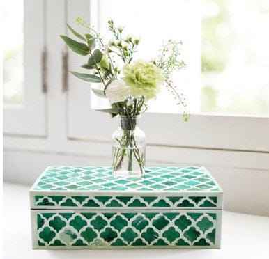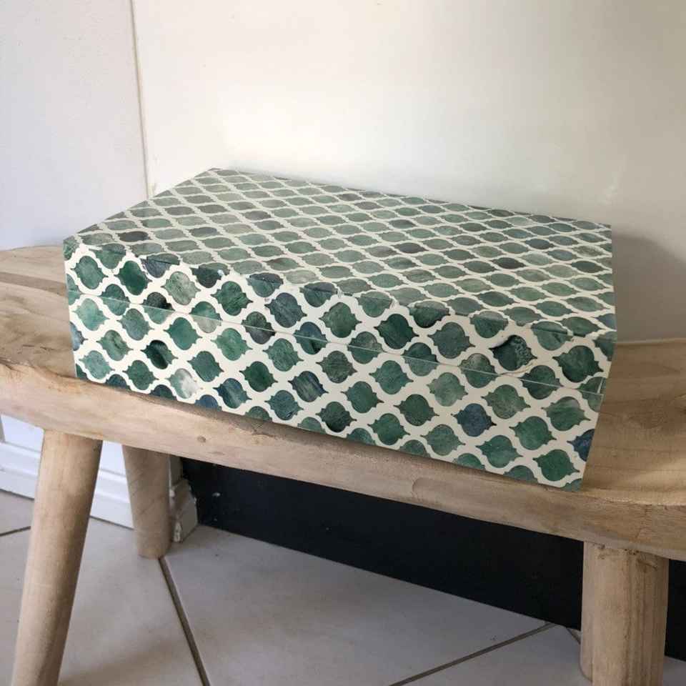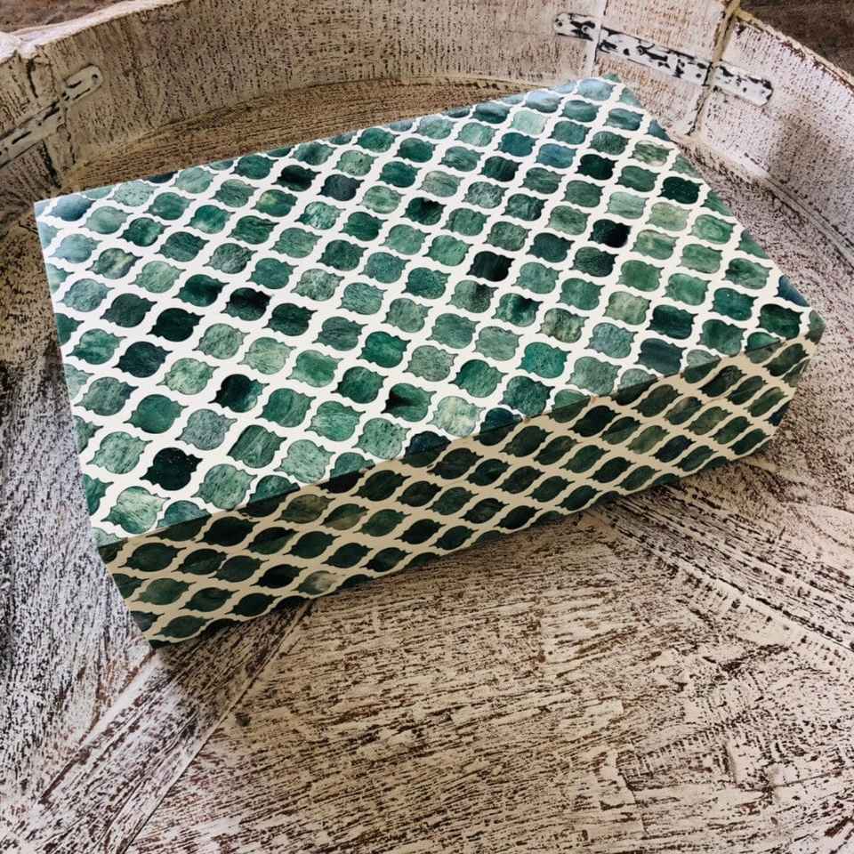 Boîtes à bijoux en incrustation d'os fabriquées à la main de source éthique Organisateur de mouchoirs à motifs floraux verts et blancs Meilleur prix