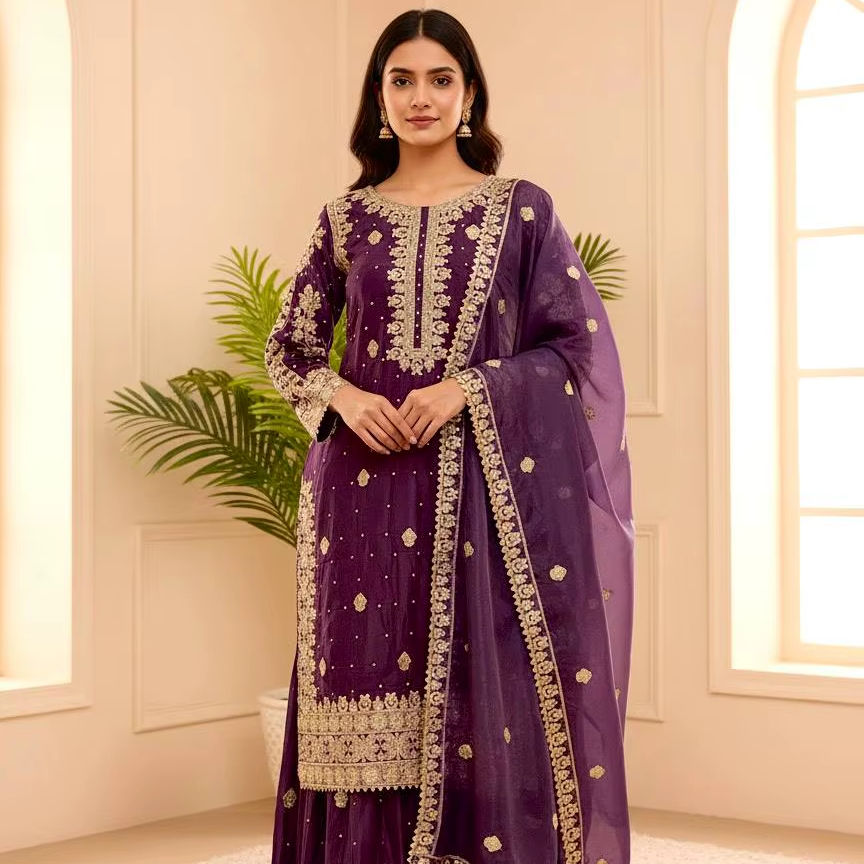 Dupatta:Organza Silk With Embroidery Sequence Work