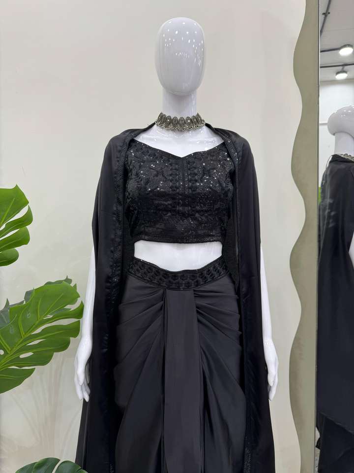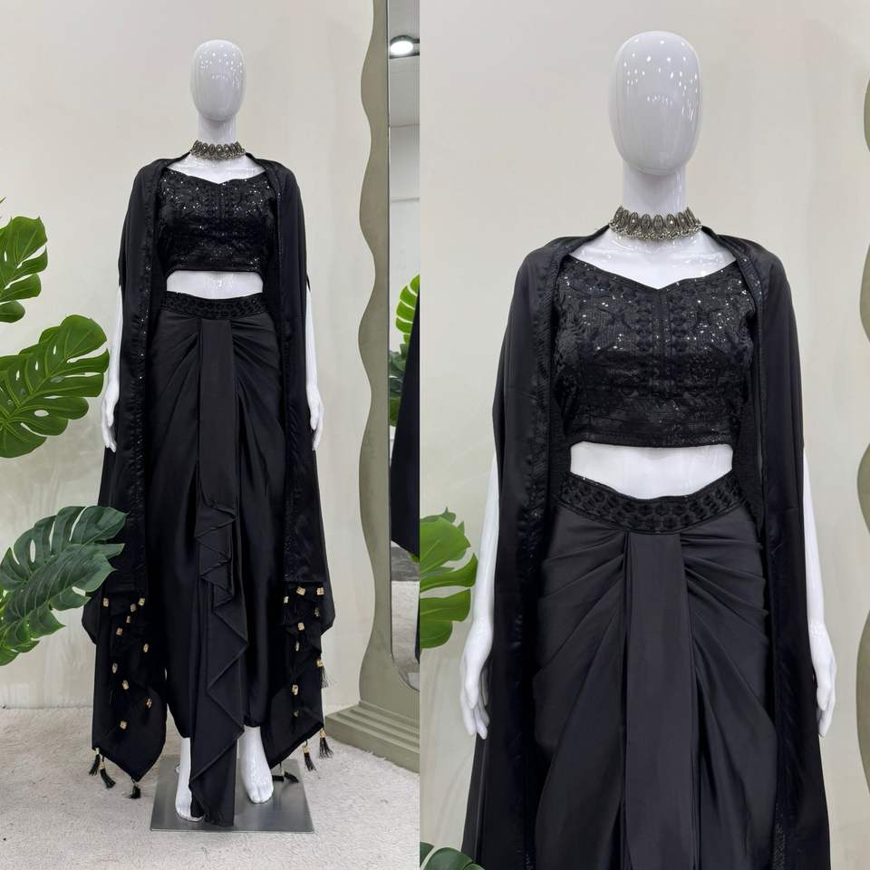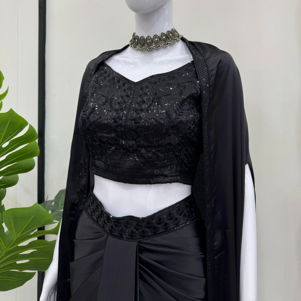Handcrafted Ethnic Excellence Satin Silk Thread Sequined Choli Ready to Wear Draped Dhoti & Tassel Finish Shrug