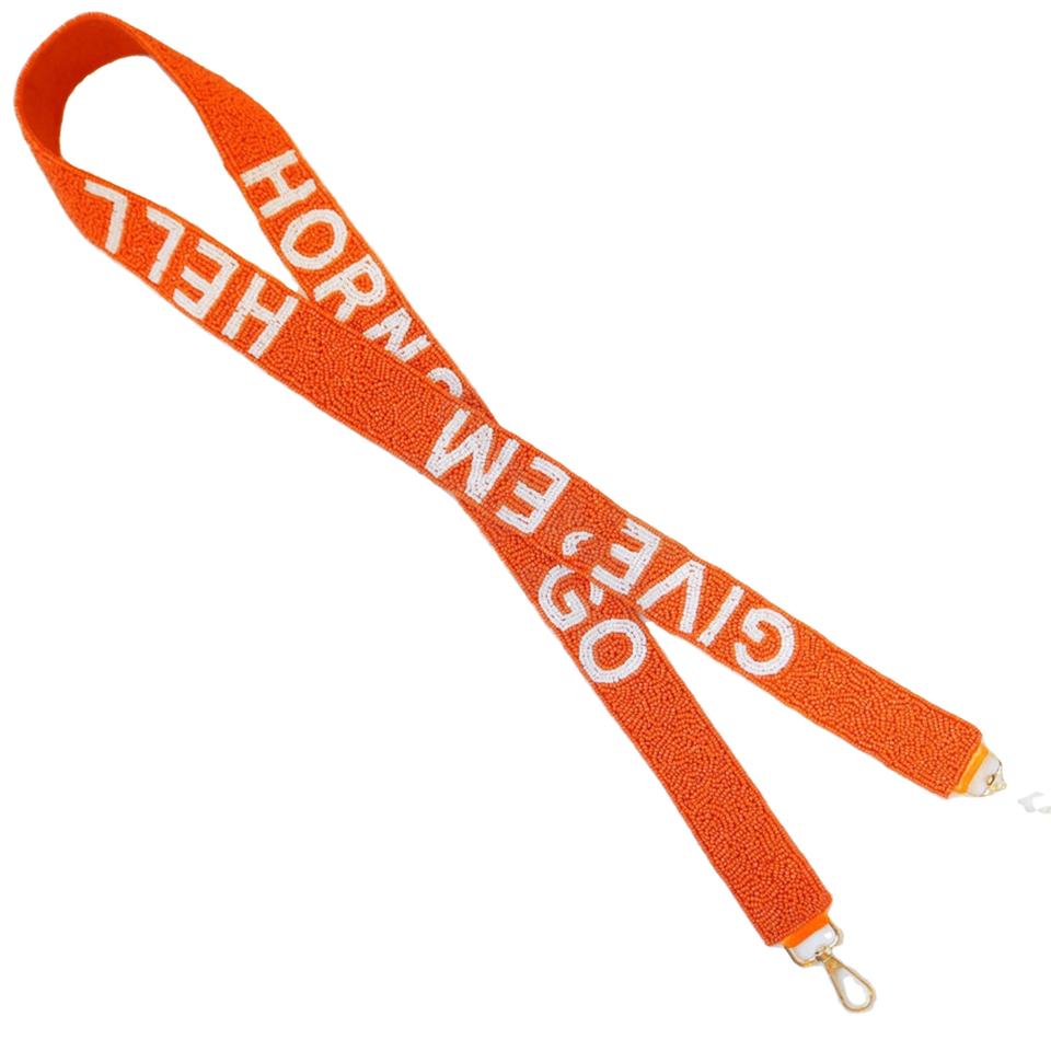 Sangle de sac à main en coton perlé faite à la main avec broderie complexe, accessoire sportif personnalisable pour les fans des Texas Longhorns