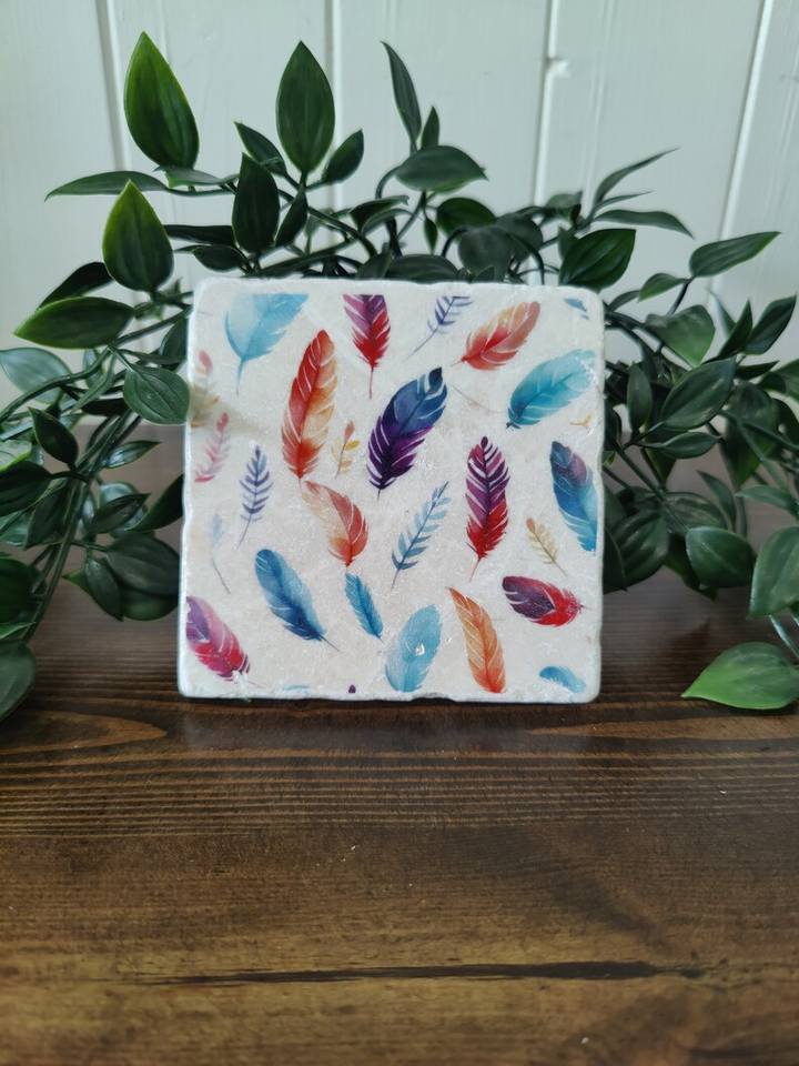 Ensemble de dessous-de-verre en marbre à plumes artisanales, décoration rustique colorée pour la maison