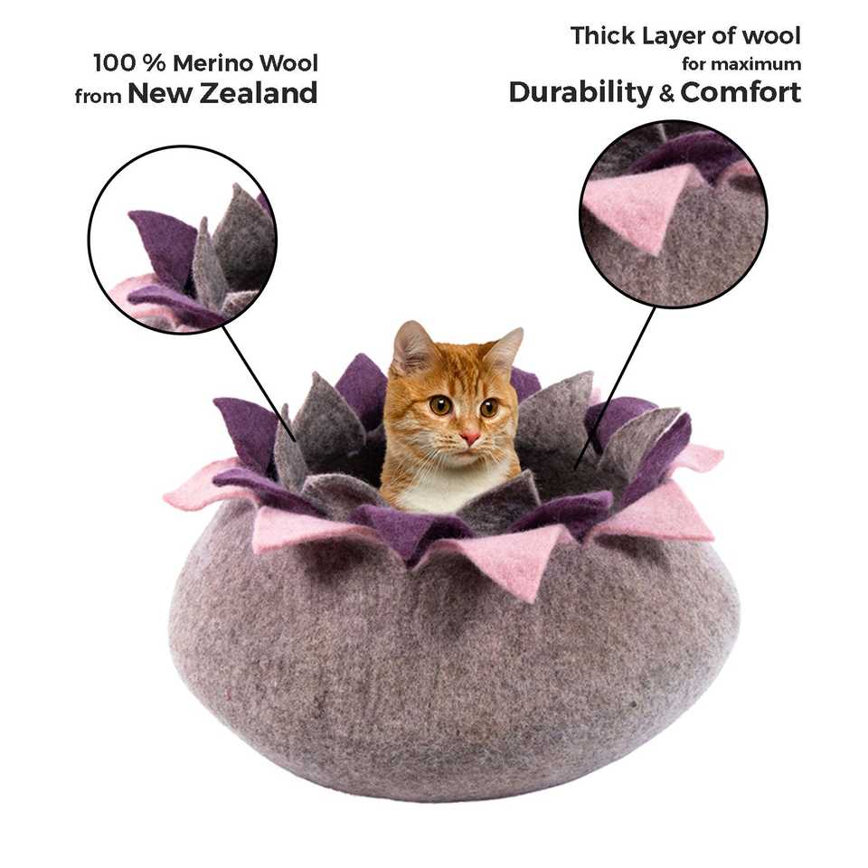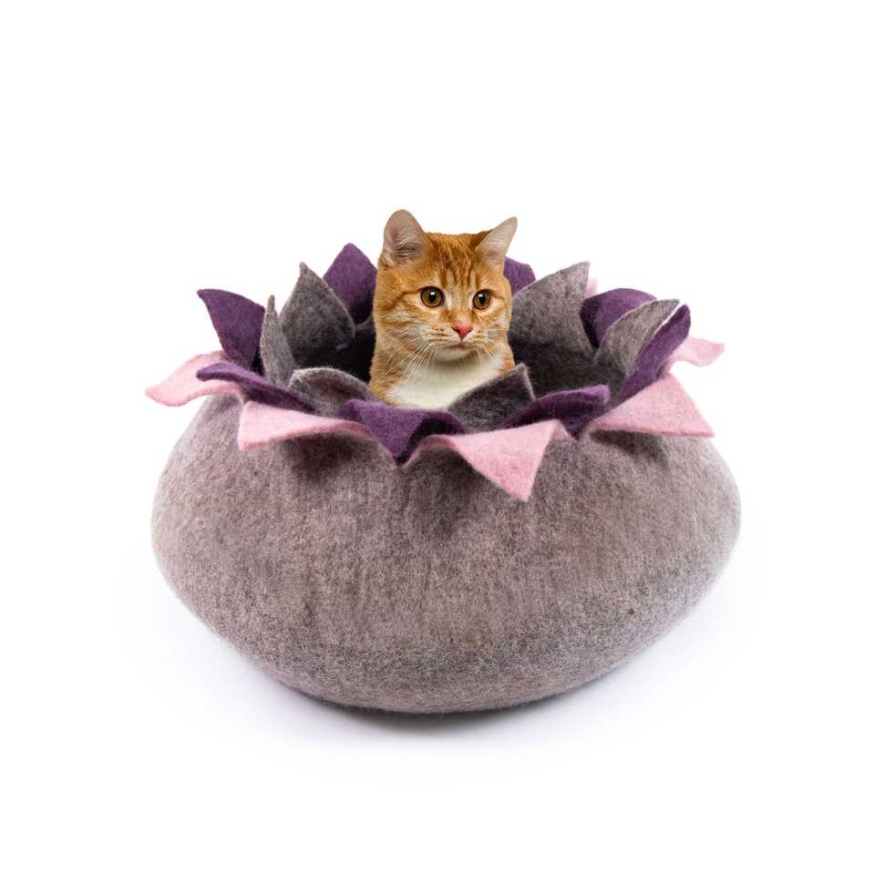 Lit pour chat en feutre artisanal, élégant et personnalisable pour une expérience de sommeil confortable, en feutre et laine