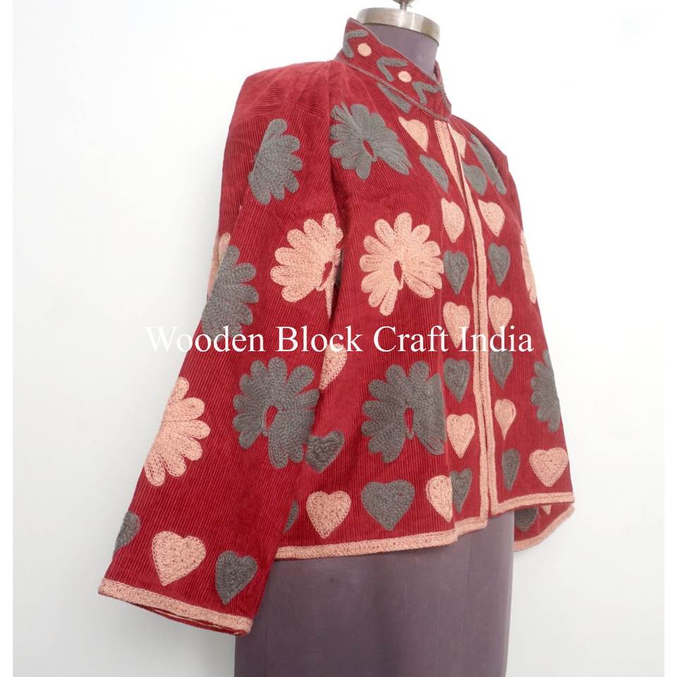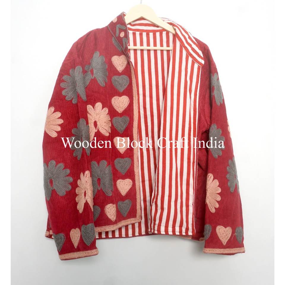 Handcrafted Finished Cotrise Embroidered Quilted Eco-Friendly Thick Breathable Vintage Ethnic Winter Jacket for Festivals