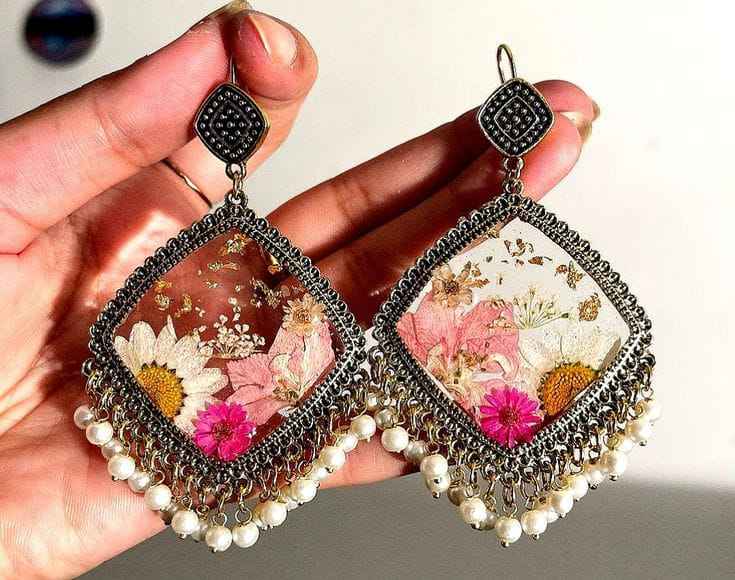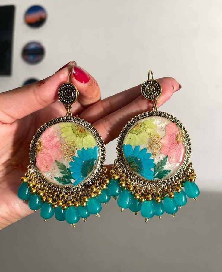 Handcrafted Brass Flower Earrings Women Gold Plated Art Deco Industrial Style Jhumka Indian Jewelry Wedding Party HF Industries