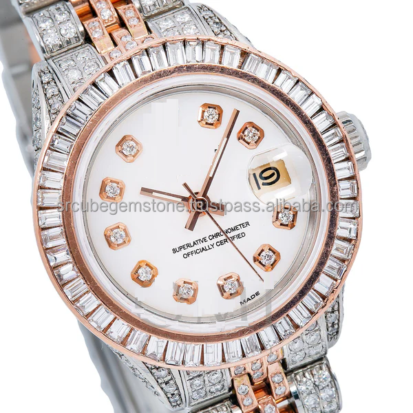 Fabriqué à la main entièrement glacé deux tons mouvement automatique montre plaque blanche unie avec buss vers le bas sangle Daliywear montre pour lui