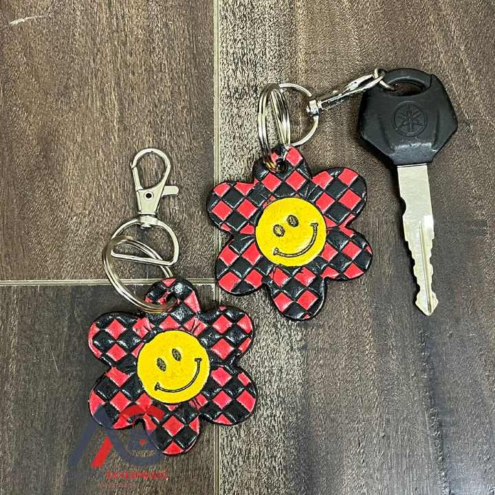 Nom du produit:Porte-clés en cuir à carreaux, travaillé à la main