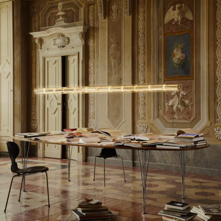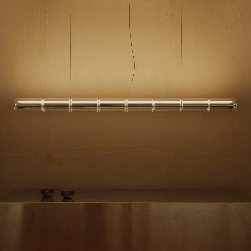 Lampe à Suspension de lustre linéaire en tube de verre fabriqué à la main pour îlot de cuisine à manger à hauteur réglable pour salle d'étude
