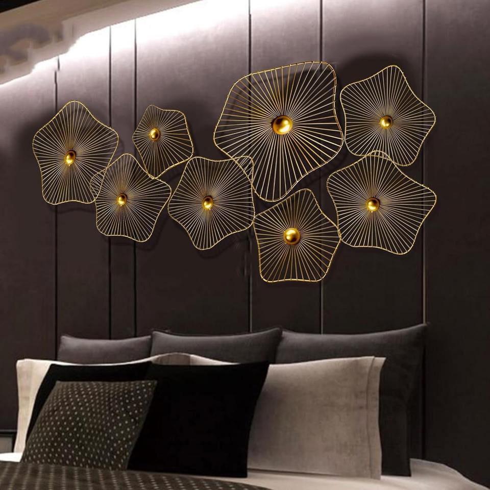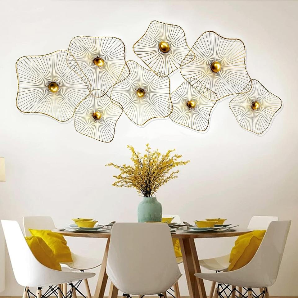 Ensemble de 8 décorations murales en métal doré faites à la main, parfaites pour la salle à manger familiale, les chambres d'hôtes, la décoration et les événements, en provenance d'Inde.