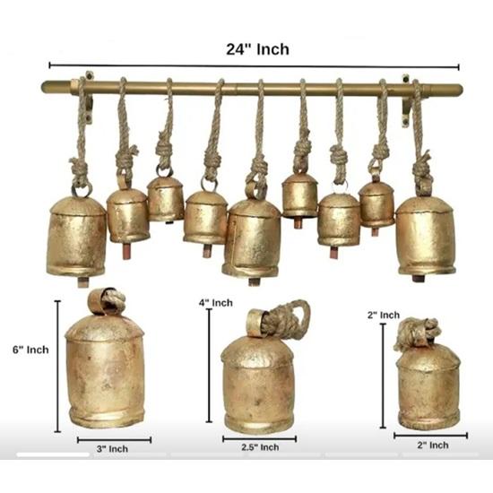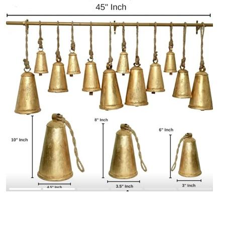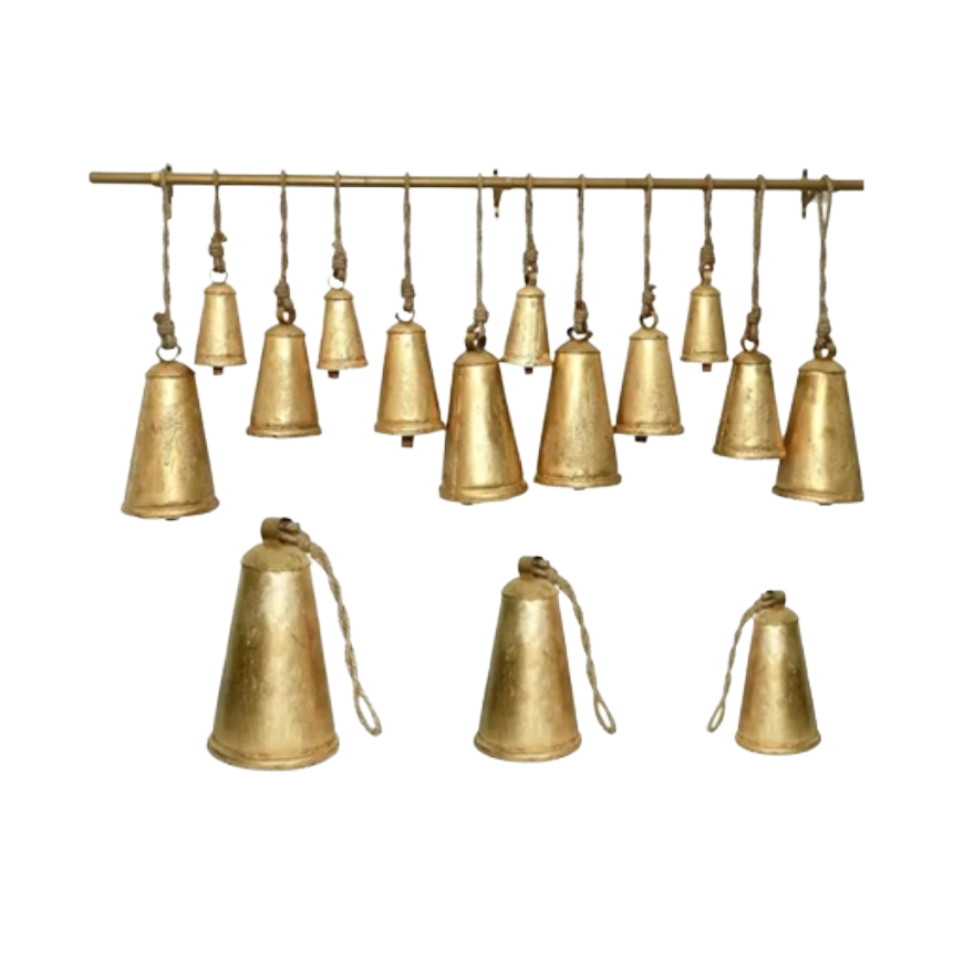 Cloche de vache artisanale en métal plaqué or, décoration de Noël antique