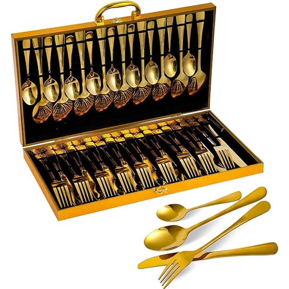 Ensemble de couverts en acier inoxydable fabriqués à la main et plaqués or Matériau inoxydable miroir Durable pour les repas quotidiens Occasions spéciales