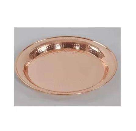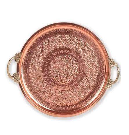 Plateau de service rond en cuivre martelé artisanal, multifonctionnel, design Art Déco, poignées coulissantes, pour mariage, maison/hôtel
