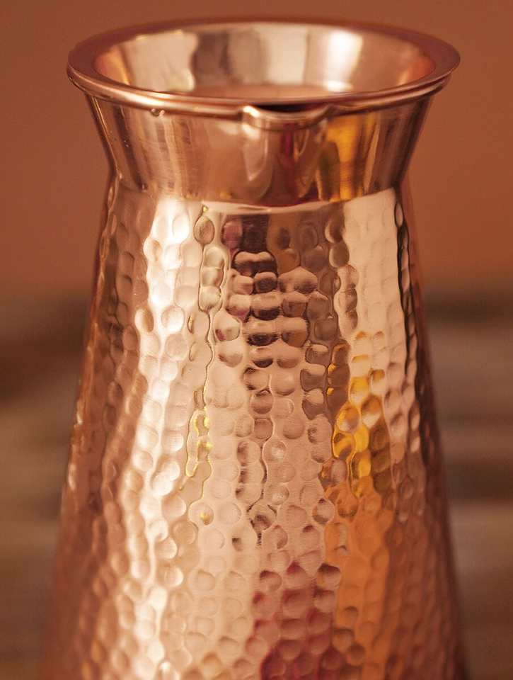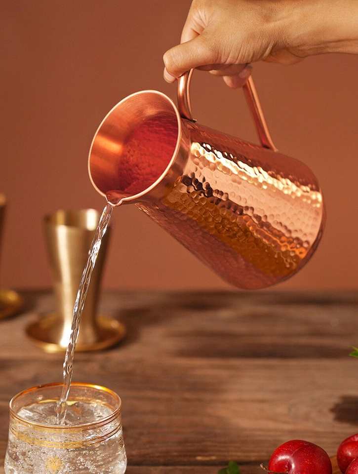 Pichet en cuivre martelé artisanal, design contemporain, 1000 ml, écologique, pour l'eau et les boissons à la maison