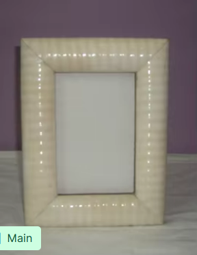 Cadre photo en résine décoratif de luxe, fait main, finition brillante, texture côtelée crème, avec design cannelé pour un style moderne