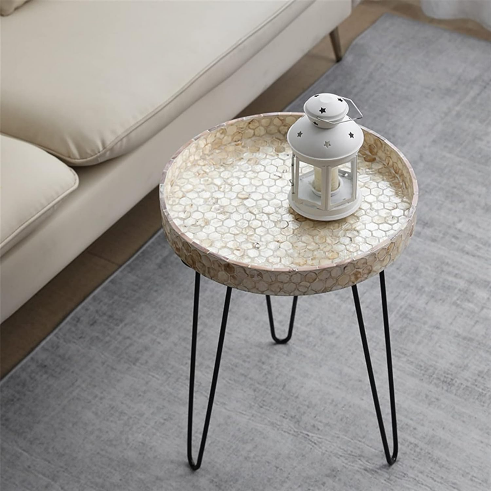 Product name:Mother of pearl round table tray with metal