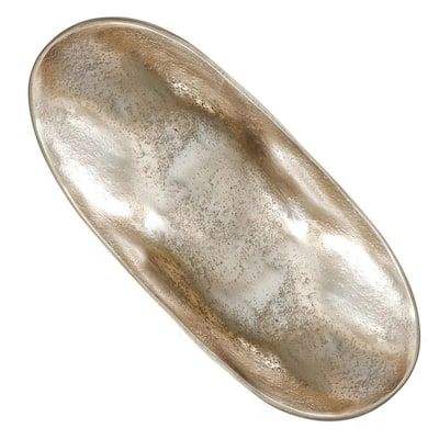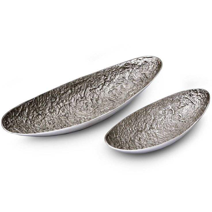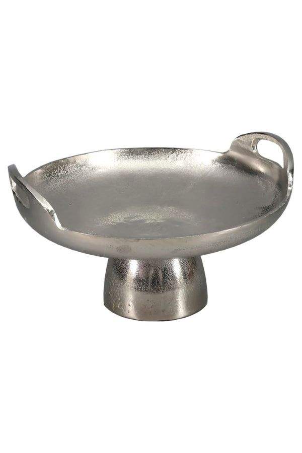 Plateau décoratif long en aluminium moulé de qualité supérieure, texturé irrégulier, fait main, en argent, avec bol central abstrait en métal