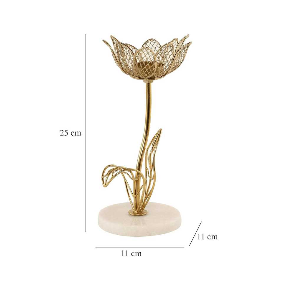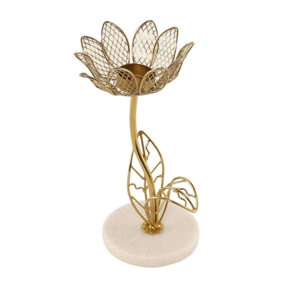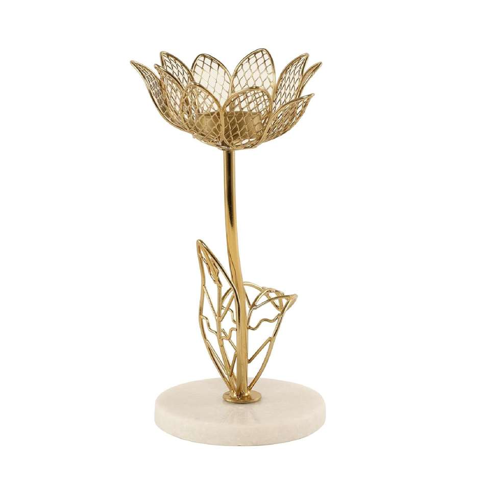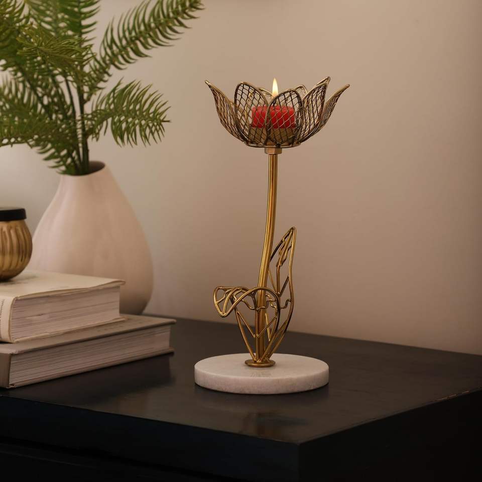 Porte-bougie artisanal en marbre Kamal avec finition dorée, motif lotus, pour bougies chauffe-plat, décoration de la maison pour Diwali, bureau