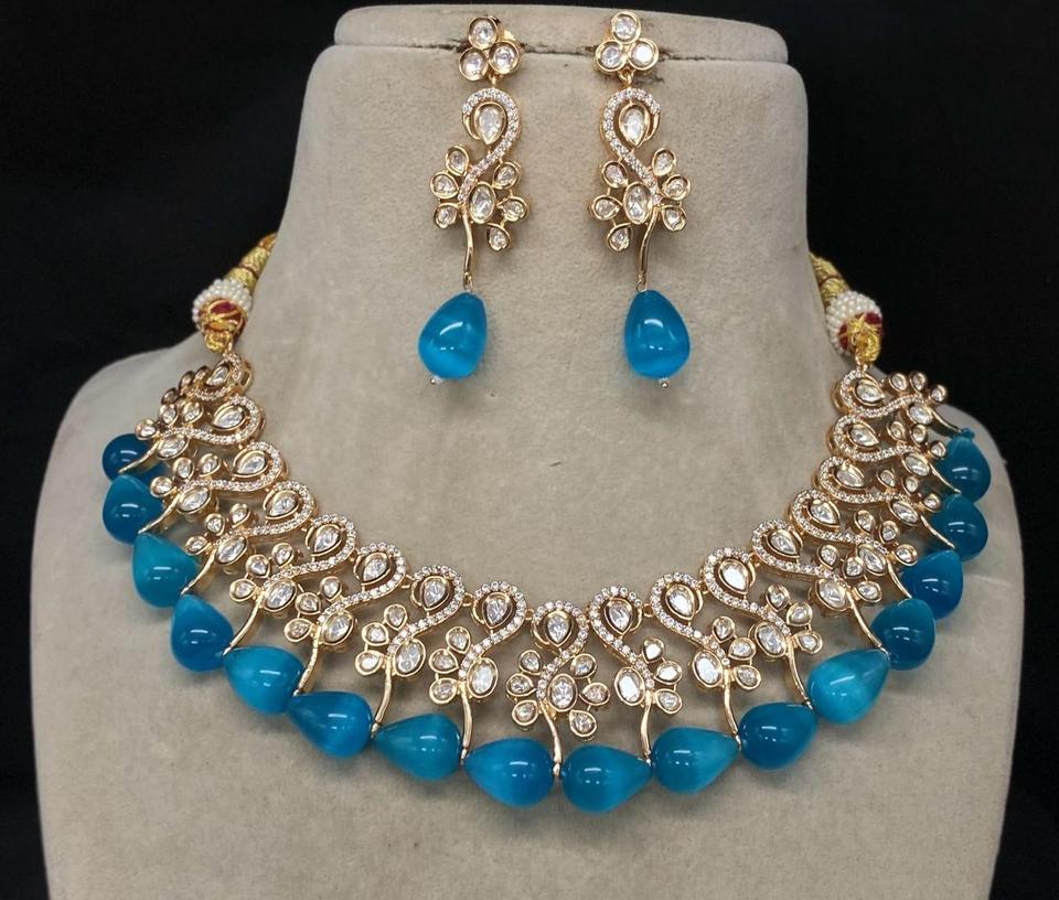 Handcrafted Kundan Brass Necklace and Earrings Set with American Diamonds Elegant Bridal Jewelry for Weddings Special Occasions