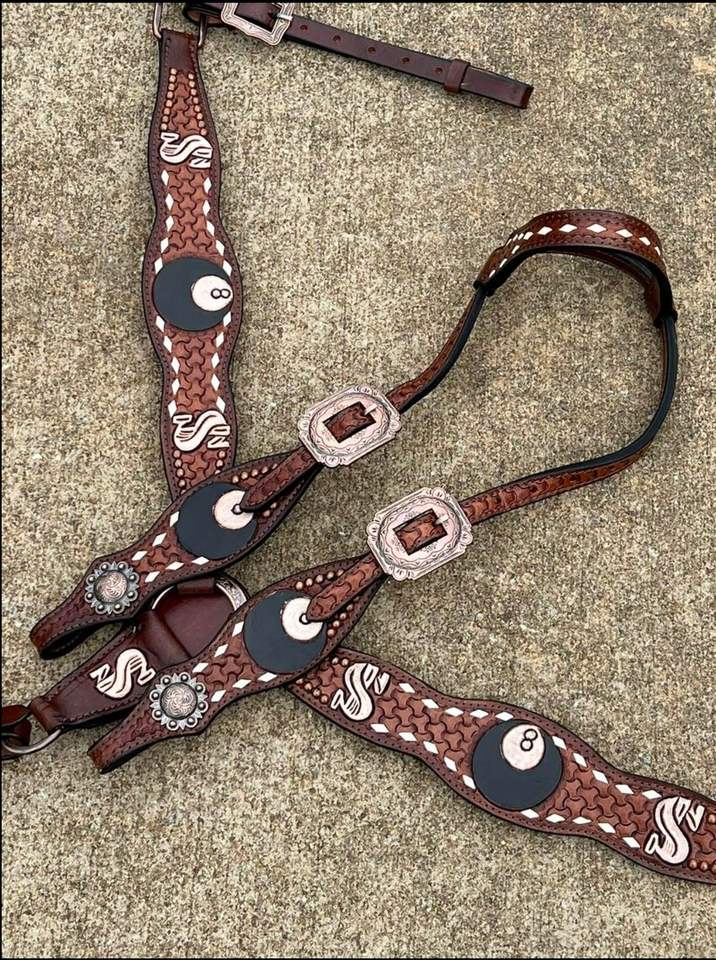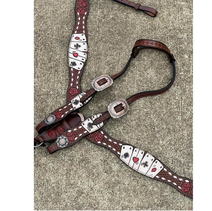 Handcrafted Leather Horse Western Crocodile Headstall & Breast Collar Tack Set for Rodeo Training and Horse Riding