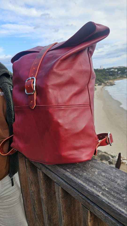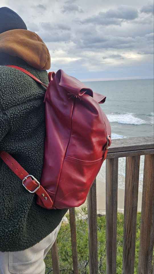 Sac à dos en cuir à enroulement