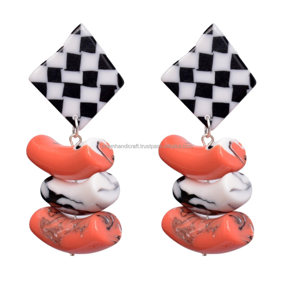 Boucles d'oreilles en résine de couleur personnalisées luxueuses fabriquées à la main pour femmes accessoires de mode hautement polis de haute qualité d'Inde