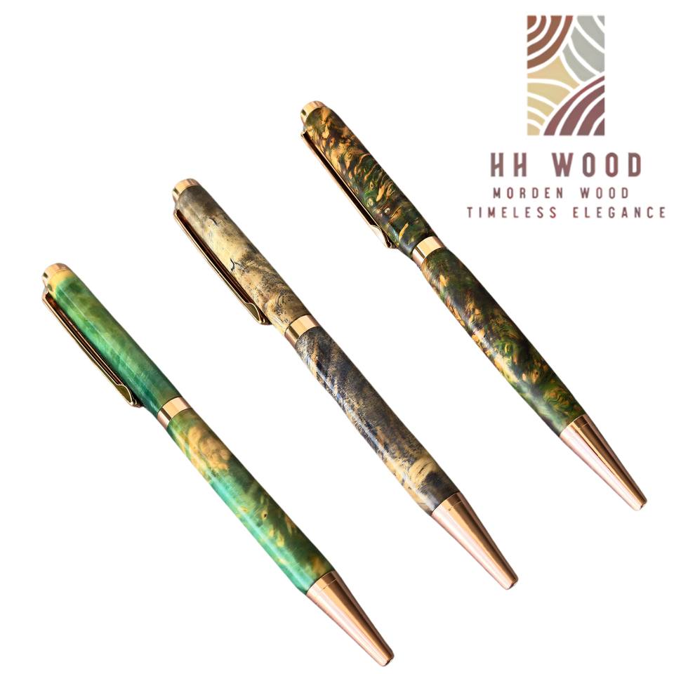 Handcrafted Luxury Executive Twist Ballpoint Pen Burl Stabilized Wood 0.7mm Writing Width Amber Gift Collection
