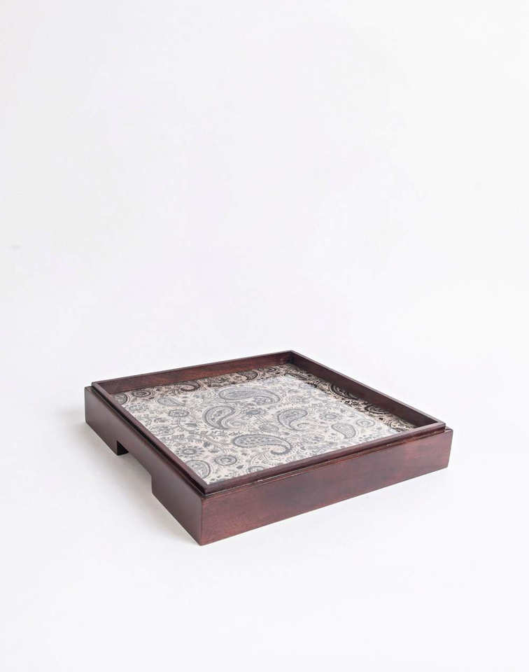 Plateau de service carré en MDF artisanal au design moderne, avec poignée décorative écologique, pour le service du café et du thé, prix de gros