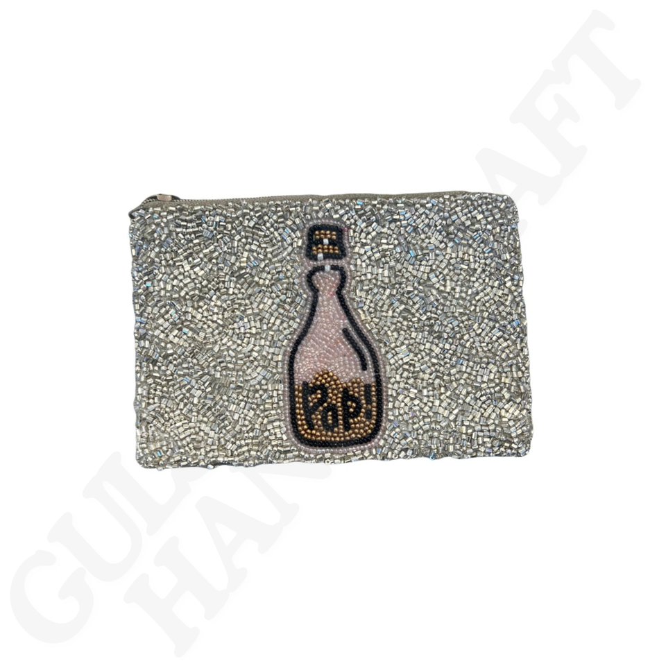 Handcrafted MRS Seed Beaded Coin Purse Elegant Bridal Accessory for Coins,Cards,and Small Essentials Perfect for Brides