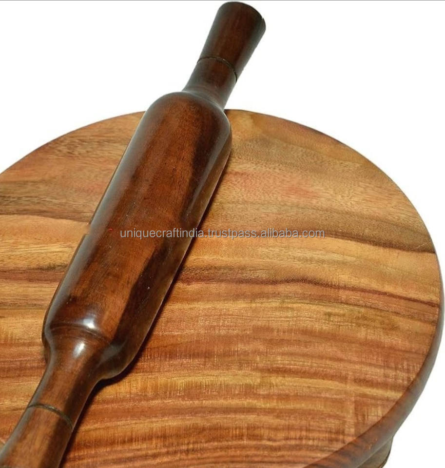 Ensemble Chakla Belan en Bois de Mangue Fait Main Planche à Rouler Traditionnelle et Épingle pour Roti Chapati Cuisine et Décoration de Cuisine
