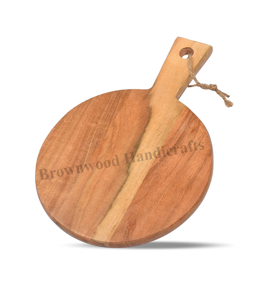 Planche à fromage à découper ronde en bois de manguier artisanale Base antidérapante avec poignée découpée pour une utilisation en cuisine Amazon Bulk Wholesale Supply