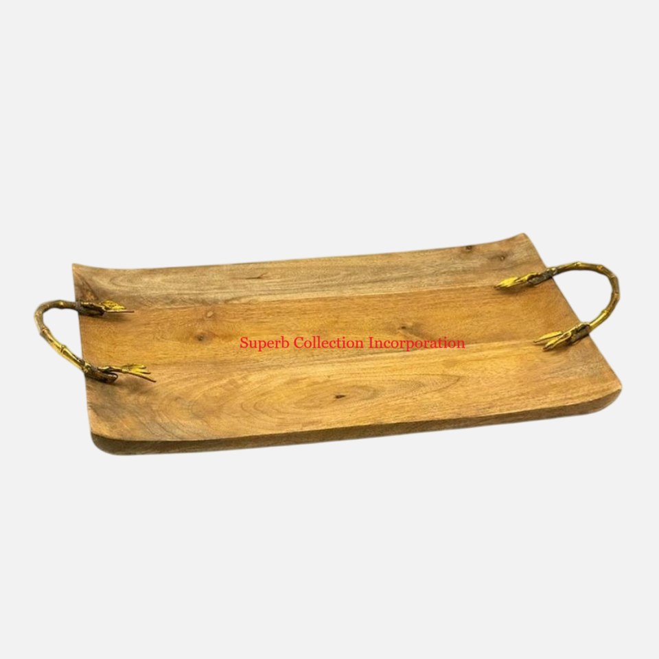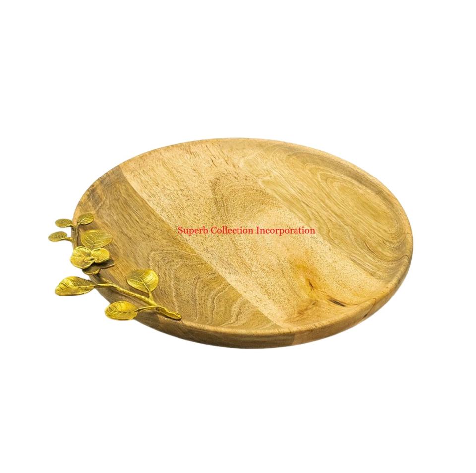 Plateau de service en bois de manguier fabriqué à la main en laiton accent floral plateau décoratif pour la maison écologique pour tous les événements pour la restauration