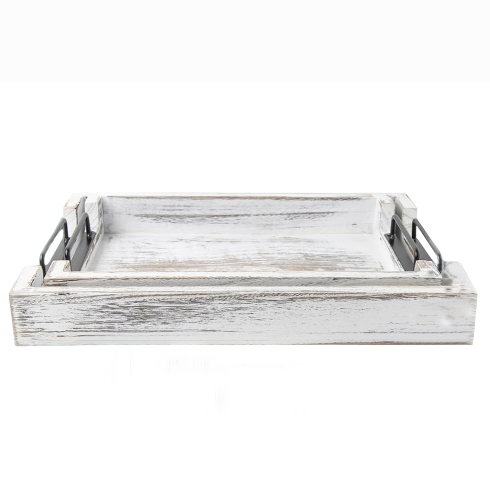Nom du produit:Plateau de service en bois de manguier avec poignées en métal l Lot de 2
